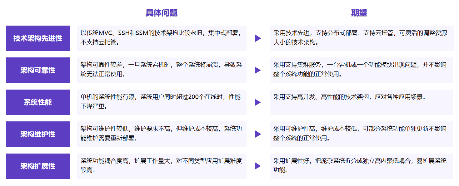 leyu.乐鱼创新曾对一些企业进行了详细调研,通过调研数据分析企业现有应用系统情况,主要从系统模式、开发语言、开发框架、中间件和部署架构等方面反映系统技术架构现状。企业应用架构改造主要有以下方面的挑战: